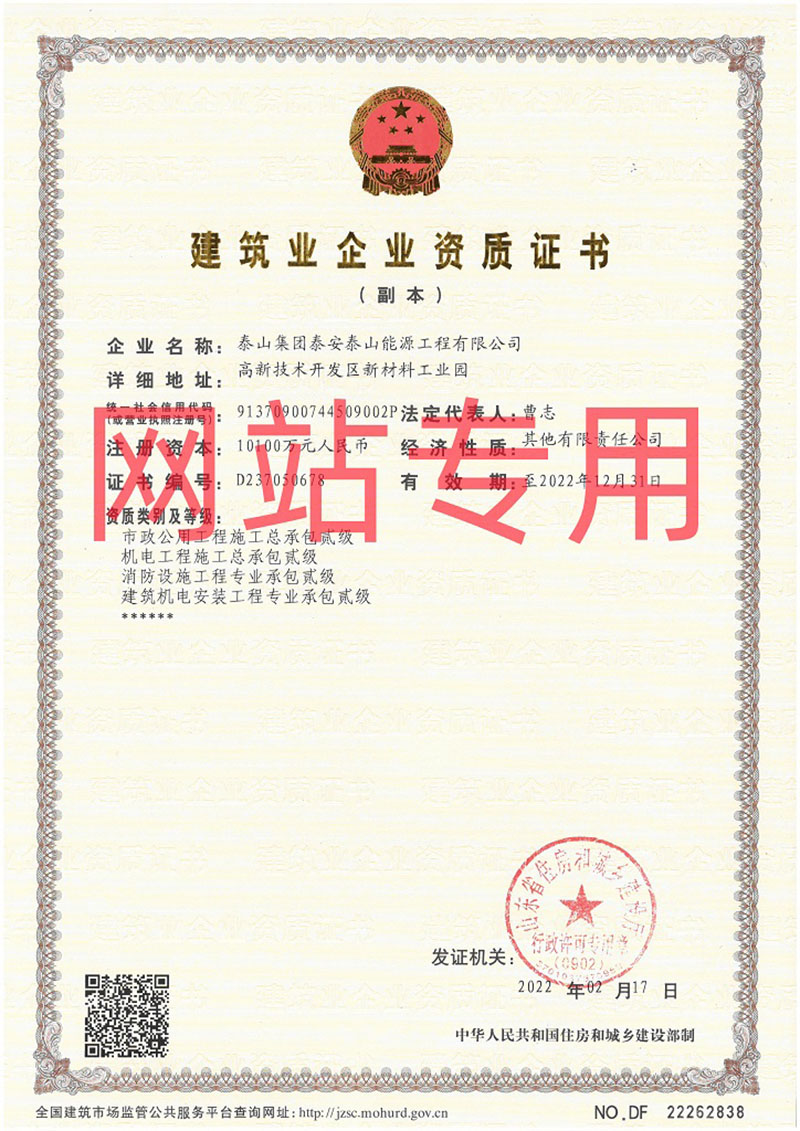 市政公用工程施工總承包貳級、建筑機電安裝工程專業(yè)承包貳級、機電工程施工總承包貳級、消防設(shè)施工程專業(yè)承包貳級